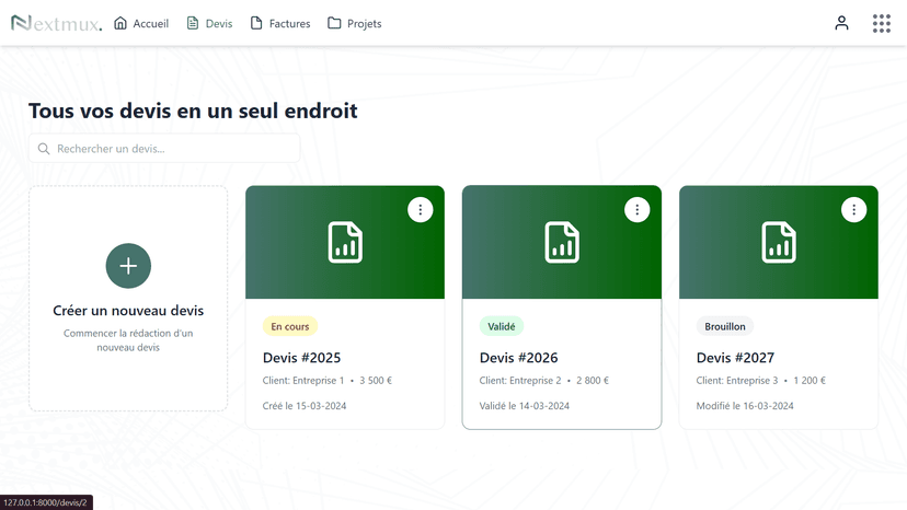 - Développement complet du frontend de DevisFact, une application de création de devis et factures